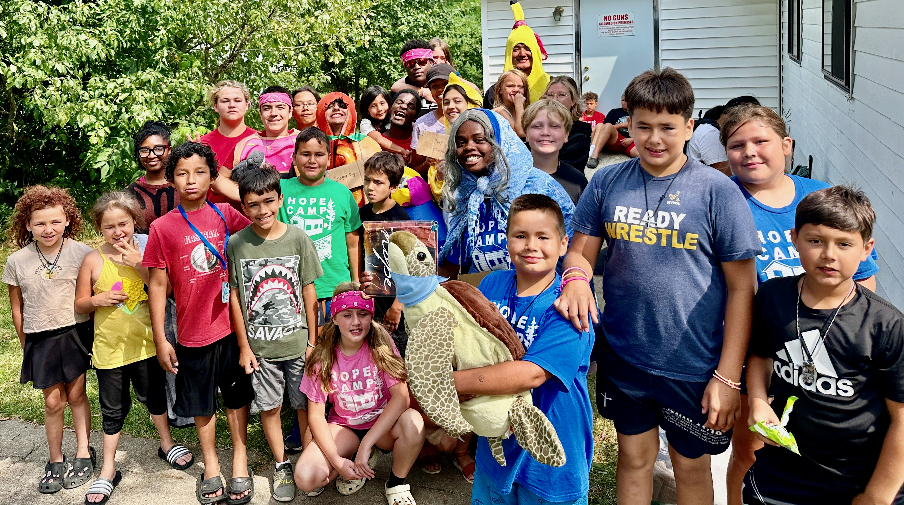 Hope Camp is open to all youth and young adults in the community. We offer groups for preschoolers, kids ages 6–8, kids ages 9–12, teenagers, and young adults in their 20s. Community members are invited to serve as volunteers.
